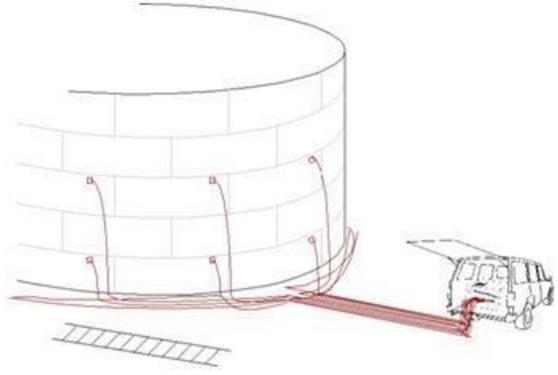 Inspeksi dilakukan hanya dengan memasang sensor – sensor di dinding luar tangki pada jarak yang sama, dalam konfigurasi dua baris.